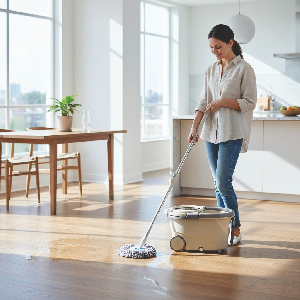 Limpiador y escurridor con pedal, ruedas y manija