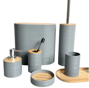 Jabonera redonda rayada de plastico gris
