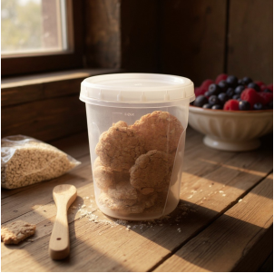 FRASCO REDONDO DE VIDRIO TAPA BAMBU 600ML